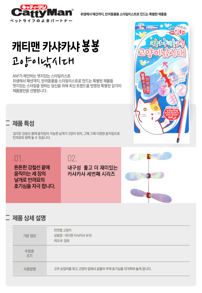 날개짓 소리와 움직임에 고양이들의 호기심과 사냥본능을 자극합니다.