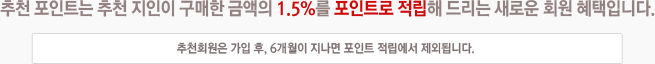 * 예치포인트 = 구매액 x 1.5% (소수점 반올림으로 인하여 예치포인트및 적립 포인트의 총합이 다를수 있습니다.)