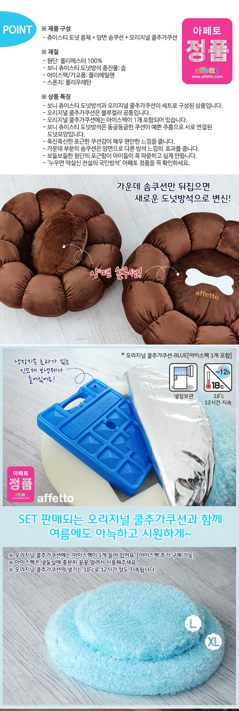 아페토 - [쿨세트] 보니츄이스티 도넛방석 L (초코)