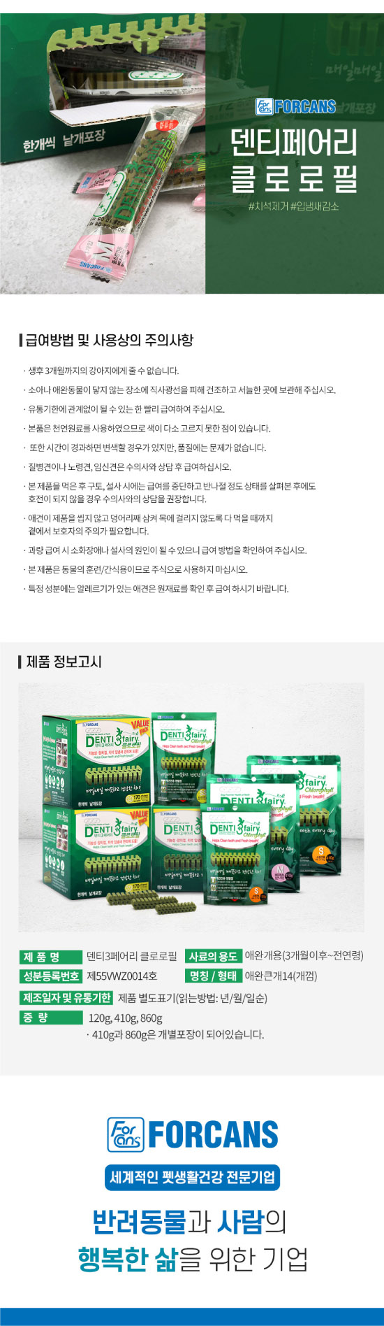 포켄스 - 덴티페어리 클로로필 (M) 410g(34개입)