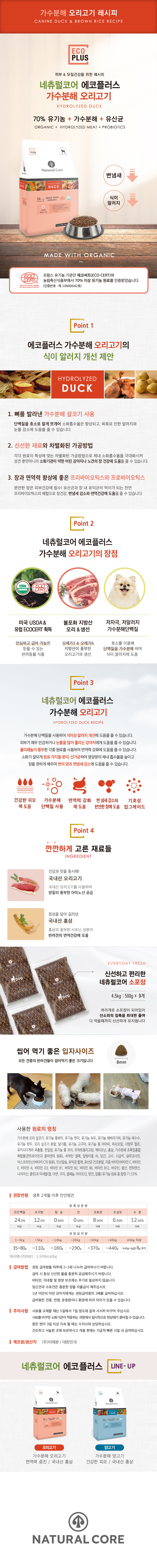 네츄럴코어 - 70% 유기농 에코플러스 가수분해 오리고기 4.5kg
