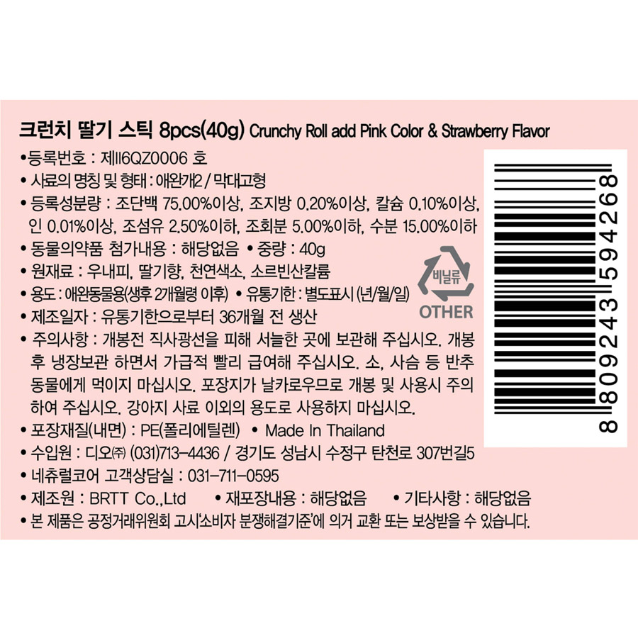 네츄럴코어 - 크런치 딸기스틱 8P