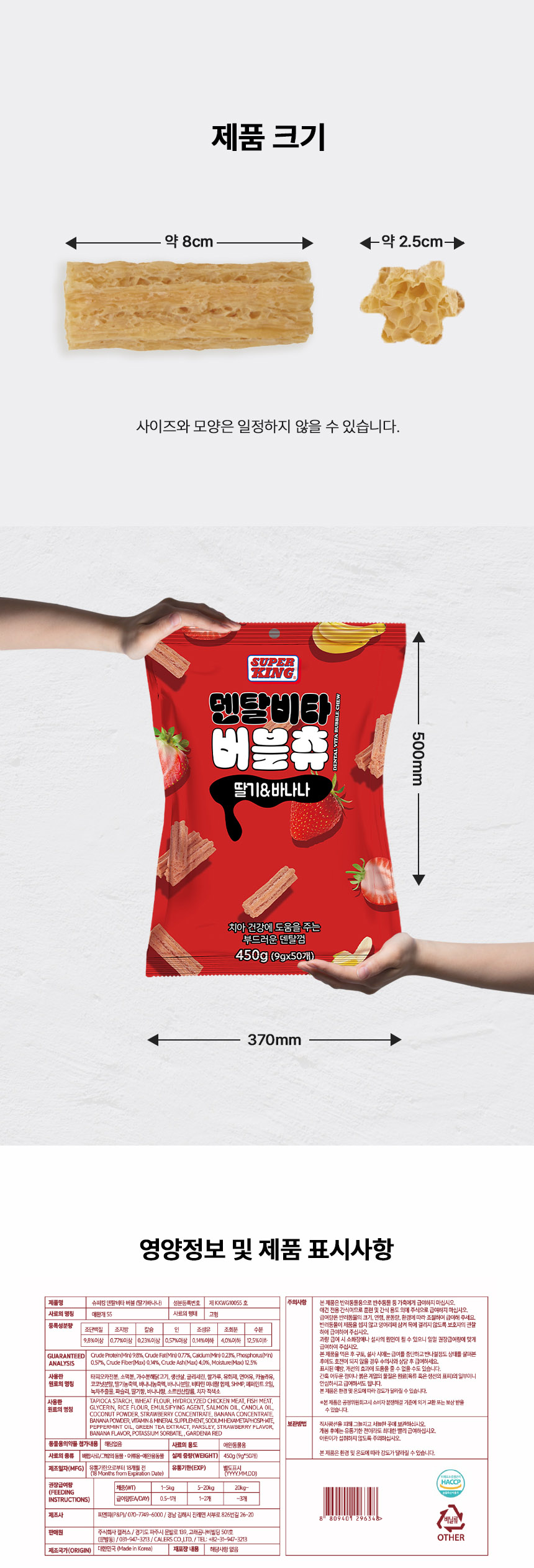 슈퍼킹 - 덴탈비타 버블츄 딸기&바나나 450g (50개입)